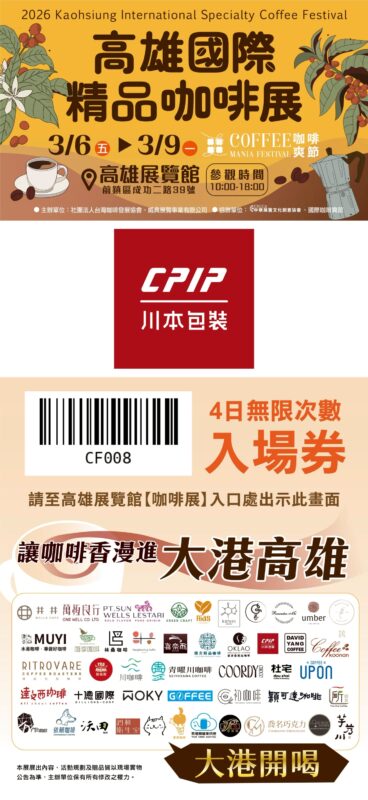 展覽特訊, 展覽特訊高雄國際精品咖啡展 𝟯/𝟲(五)-𝟯/𝟵(一)【免費電子轉傳券】 Posted on 10 2 月, 202610 2 月, 2026 by cpip.draw 10 2 月 Continue reading →